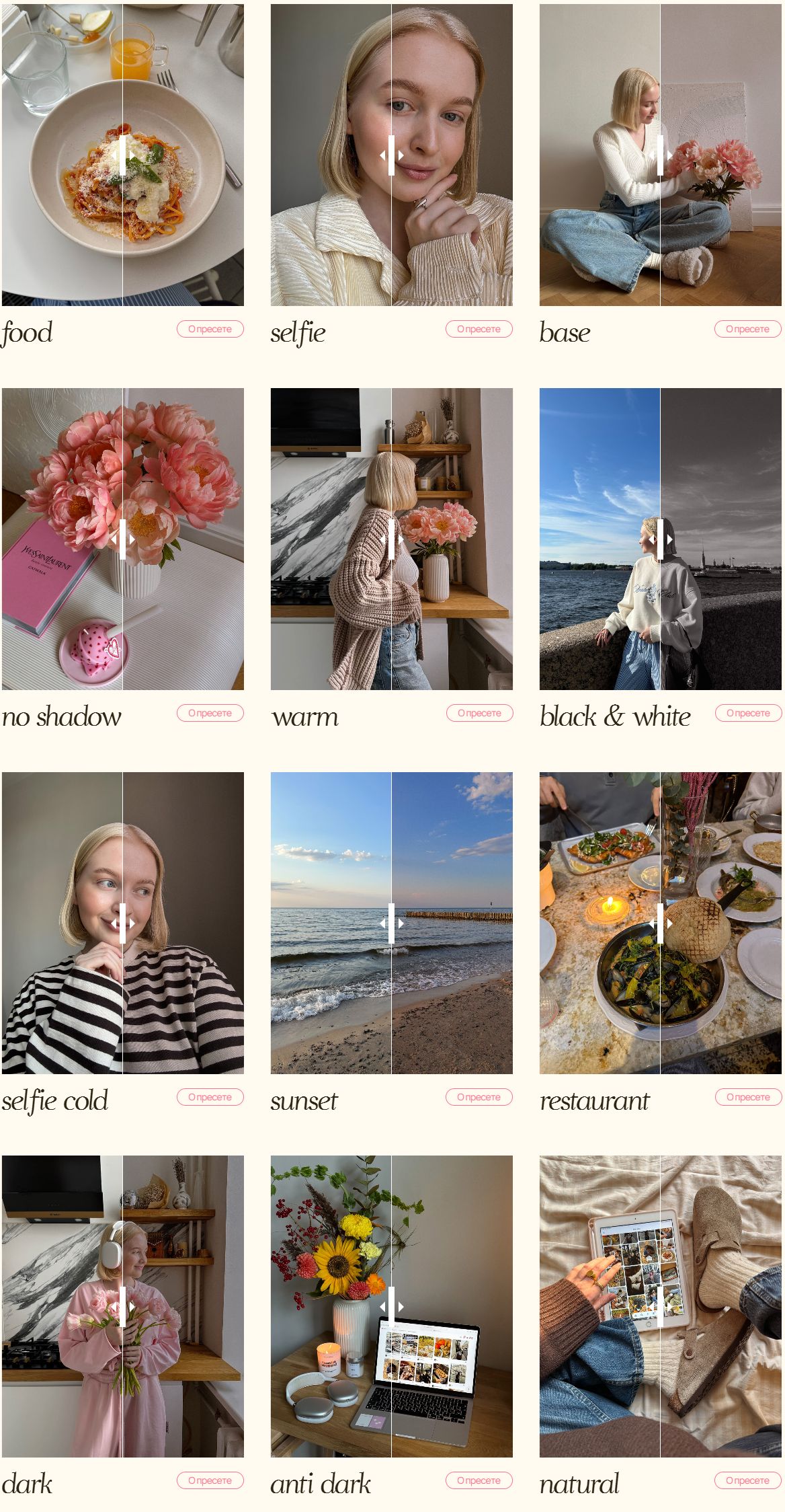 Вы получите 12 пресетов для фото, 9 пресетов для видео Resource downloadPriceVIP onlyOnly VIP downloadUpgrade VIPBuy now 0 0 Anastasia Prózorova