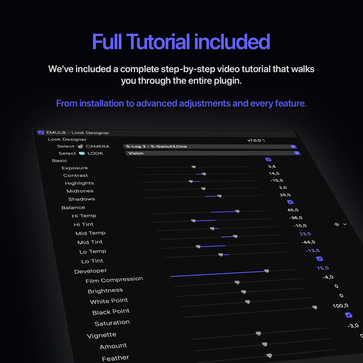 EMUL8 Film Emulation includes: