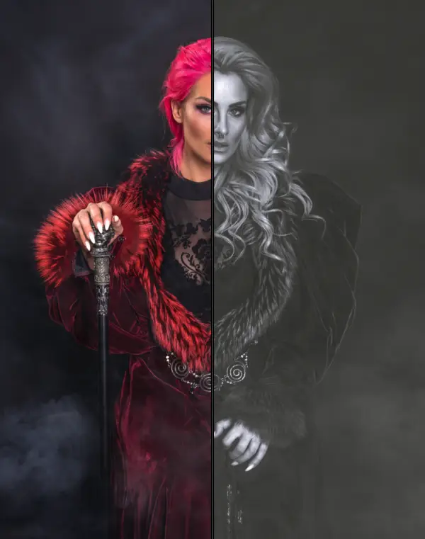 Diese Voreinstellung heben dunkle Töne und Gesichtszüge mit ihrer geringen oder hohen Belichtung und ihren starken Kontrasten hervor.