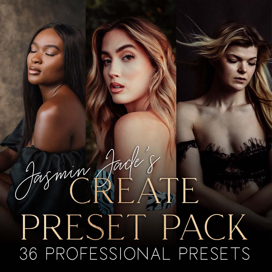 The Jasmin Jade Collection: Create Preset Pack features 36 professional presets with grain adjustment, created for Lightroom and ACR. This collection is unique because it has all of Jasmin’s favorites represented in it, yet they are brand new, exclusive presets.